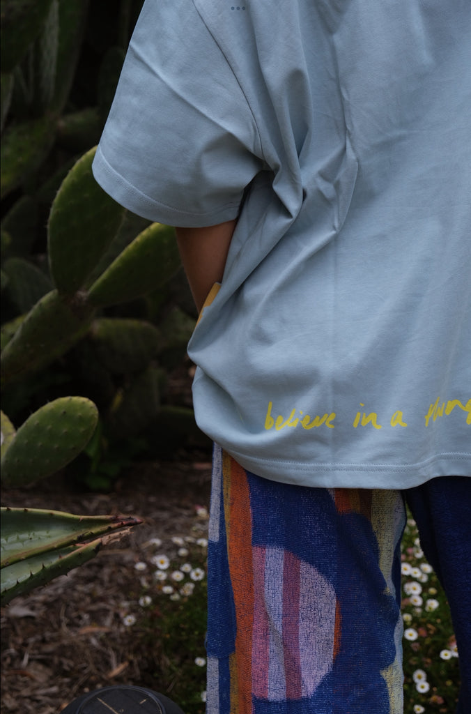 100% cotton standard boxy tee in the most beautiful baby blue - shipping from 26.01